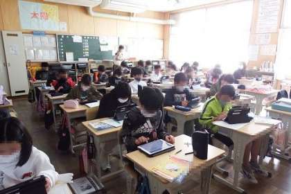 地区別学校参観日第1日目です。子どもたちも、お家の方が来られるということで、少し緊張気味。子どもたちの素敵なところをたくさん見ていただきたいなと思います。写真は、5年1組と4組の様子です。