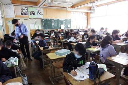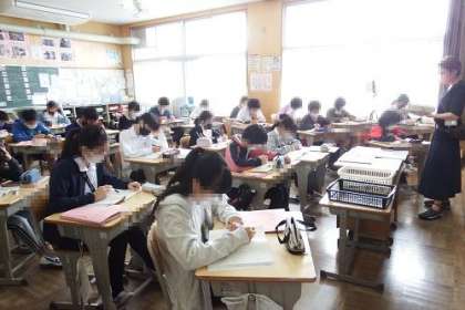 地区別学校参観日第1日目です。子どもたちも、お家の方が来られるということで、少し緊張気味。子どもたちの素敵なところをたくさん見ていただきたいなと思います。写真は、6年1組と3組の様子です。