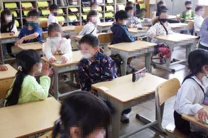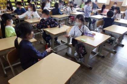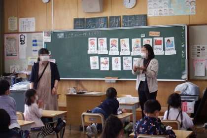 英語で「うごきのいいかたをしろう」の学習に取り組みました。黒板に掲示された動き言葉の英語を使い、ペアにクイズをしながら活動しました。笑顔があふれる楽しい学習でした。
