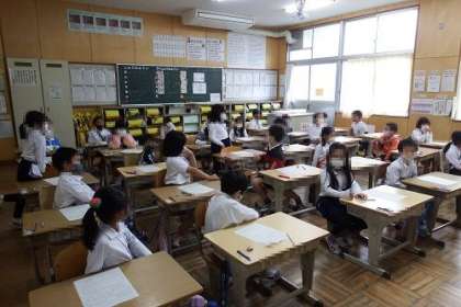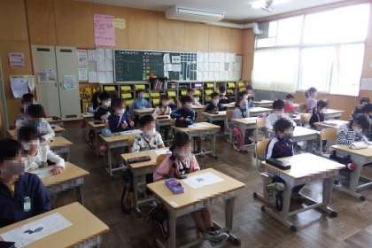 地区別学校参観日2日目です。今日は、田中南A・B、田中西、深田2・3・4丁目、美山南A・Bの地区の参観日でした。お家の方が来られる初めての参観で、はりきる子どもたちがたくさんいました。写真は、1年1組と4組と5組の様子です。