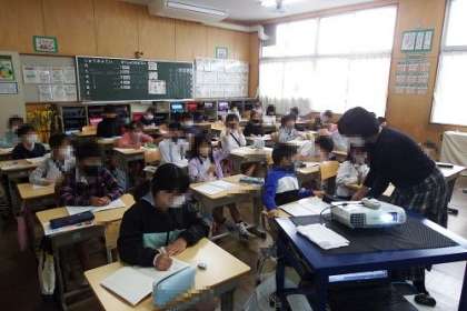 地区別学校参観日2日目です。今日は、田中南A・B、田中西、深田2・3・4丁目、美山南A・Bの地区の参観日でした。お家の方が来られる初めての参観で、はりきる子どもたちがたくさんいました。写真は、2年1組と3組の様子です。
