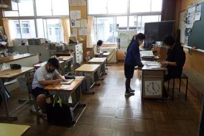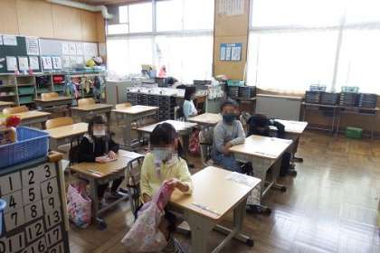 地区別学校参観日2日目です。今日は、田中南A・B、田中西、深田2・3・4丁目、美山南A・Bの地区の参観日でした。お家の方が来られる初めての参観で、はりきる子どもたちがたくさんいました。写真は、7組と10組と11組の様子です。