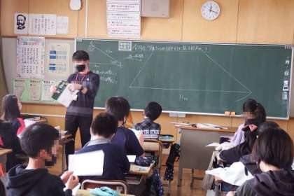 算数で「拡大図」の作成に取り組みました。線分の長さや角の大きさを使って、図をかきあげることができました。次は、中心点を決めて拡大図をかいていきます。