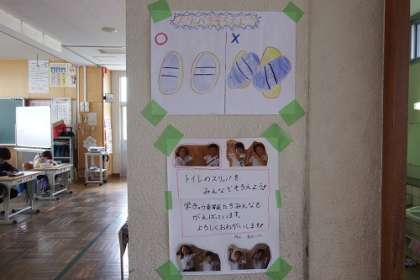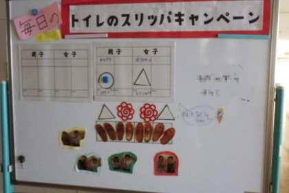 3年生がトイレのスリッパをそろえる取組を継続して行っています。みんなが気をつけるようになったおかげで、トイレのスリッパがきれいにそろうようになりました。次に使う人が使うやすいように心がけてくれています。