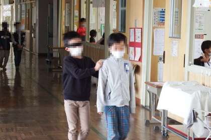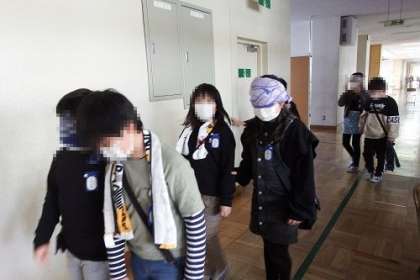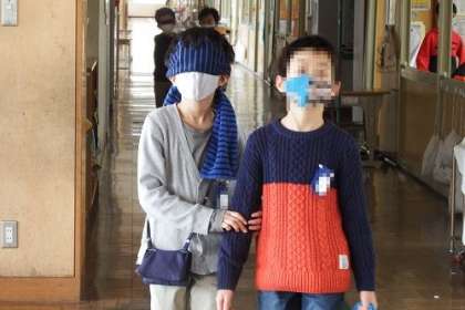 総合的な学習「やさしさ たんけん」で、ブラインドウォークを体験しました。目隠しをして、友達の案内にしたがって歩きます。目が見えない状態で、歩くことの怖さやむずかしさを感じることができました。