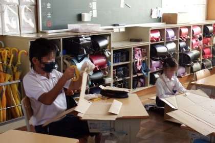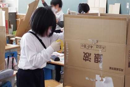 今日は、ダンボールカッターで段ボールを切る練習をしました。ダンボールを切る時の音が小気味よいです。段ボールを立てたり横にしたりしながら、一生懸命に切っていました。