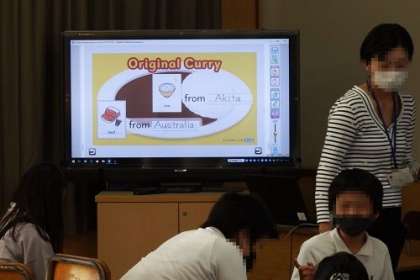 英語を使って、オリジナルカレーをつくる学習を行いました。自分が考えた食材がどこからきたのかを考えながらカレーをつくります。カードを使いながら、おいしそうなカレーをイメージして完成させていました。