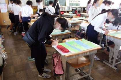 図工で取り組んできた「田んぼのいのち」の絵が完成し、鑑賞会を実施しました。お互いに鑑賞しあいながら、友だちの絵のよさを認めたり、自分の絵のよさを教えてもらったりしました。