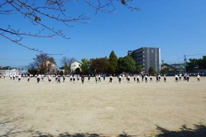 今週は、11月の体育発表会に向けて運動場での練習が盛んに行われました。写真は、3年生の練習の様子です。子どもたちも練習に精一杯取り組んでいます。