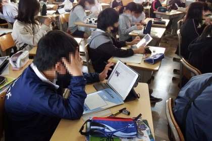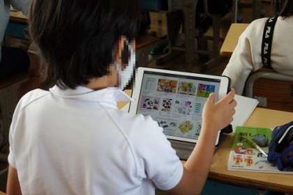 今日は、日本各地の工業製品を分類しました。機械工業、金属工業、化学工業、食品工業、せんい工業など、タブレットを使い、調べ学習を進めました。