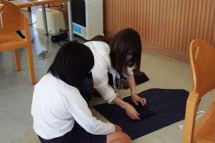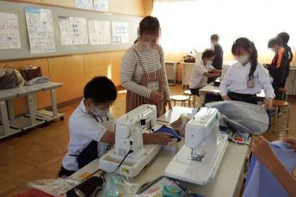 家庭科で「エプロンづくり」に取り組んでいます。プチボラみやま隊のみなさんに、ミシンのお手伝いをしていただいています。自分のエプロンができあがった子どもたちはとても嬉しそうです。これを使って家でも料理ができるかな。ボランティアのみなさん、ありがとうございました。