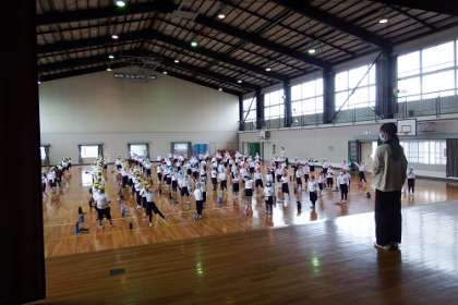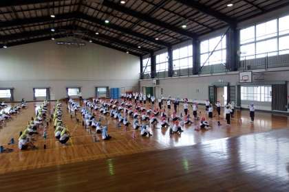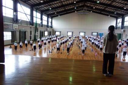 今日は、校内発表会の予定でしたが、雨のため、水曜日に延期。練習を体育館で行いました。みんなでそろえる部分を、ぴたっと合わせられるように練習しました。お互いの演技の様子を見合いました。