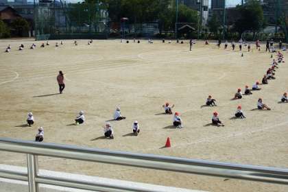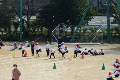 昨日の校内発表会を受け、みんなで練習をしました。今日は、徒競走の動きも確認しながらの練習です。元気よく走る姿を見て、1年間で大きく成長したなとあらためて実感しました。