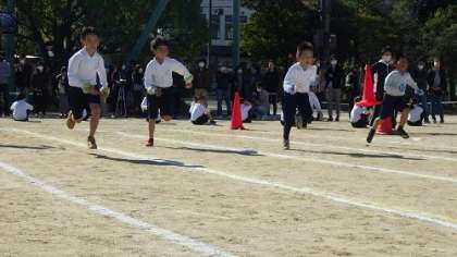 11月13日真っ青の空が広がる晴天のもと、本年度の体育発表会を行いました。この日に向けて子どもたちは多くの練習を積み重ねてきました。どの学年の発表も素晴らしく、子どもたちの笑顔や真剣なまなざしが運動場いっぱいに広がりました。多くの保護者の皆様にご参観いただきました。ありがとうございます。写真は、2年生の徒競走と表現の発表の様子です。