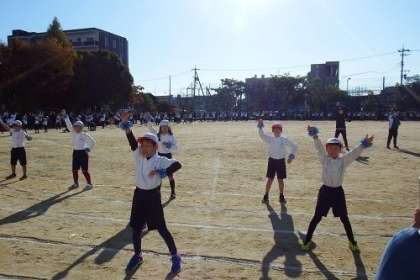 11月13日真っ青の空が広がる晴天のもと、本年度の体育発表会を行いました。写真は、3年生の表現の発表の様子です。