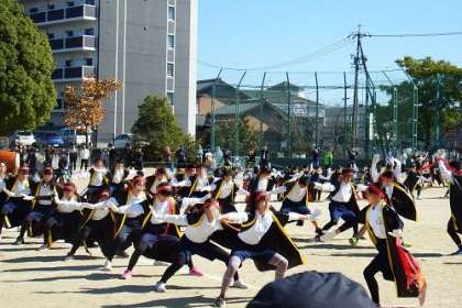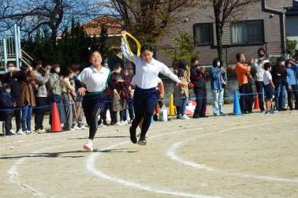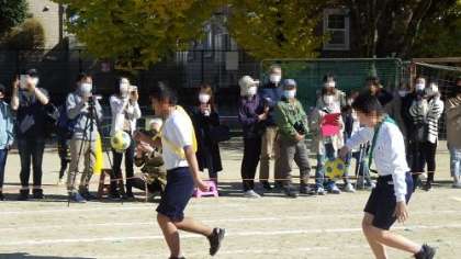 11月13日真っ青の空が広がる晴天のもと、本年度の体育発表会を行いました。この日に向けて子どもたちは多くの練習を積み重ねてきました。どの学年の発表も素晴らしく、子どもたちの笑顔や真剣なまなざしが運動場いっぱいに広がりました。多くの保護者の皆様にご参観いただきました。ありがとうございます。写真は、6年生のリレーと表現の発表の様子です。