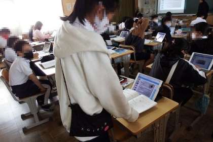 理科「もののとけ方」の学習を行っています。この日は、食塩とミョウバンを使って、水の量を増やしたり、温度を上げたりしたときに、溶け方がどのように変わるかを学習しました。