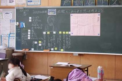 教材「わたしたちの校歌」を使って、道徳の授業を行いました。校歌に込められた思いを考えることで、自分たちがどのような学校生活を送っていったらよいのか、話し合います。美山小学校の校歌は・・・。