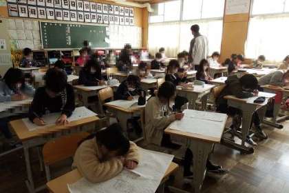 感想画「じごくのそうべい」の作品作りに入りました。この日は下絵を描いていきます。えんま大王やおにたち、おそろしいじごくの様子をどのように描くことができるのか。