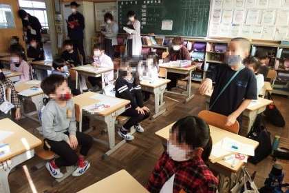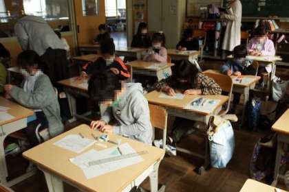 算数で三角形と四角形を学習してきました。今日は、三角形を2つに切ることで、三角形や四角形ができることを学びました。子どもたちは、頂点や辺との関係に気づいていました。