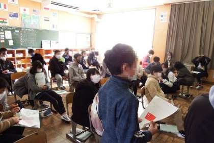 外国語で「世界と自分のつながりを紹介しよう」の学習を行いました。自分の持ち物の中で、外国で作られたものや外国からきたものを紹介します。自分のまわりには外国とのすながりがあるものが、意外に多いことに気づきました。