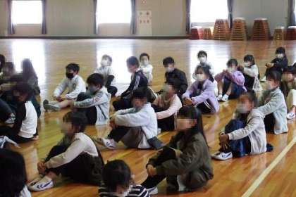 人権擁護委員の皆様を講師とてお招きし、人権移動教室を実施しました。点字ブロックや思いやりについてのお話を聞いた後、DVDを視聴しました。むしむし村の仲間で、みんなで協力し合うお話です。最後に、人権イメージキャラクターである人KENまもる君と人KENあゆみちゃんとお別れしました。