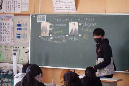 これまで学習してきた江戸時代の文化のまとめを行いました。杉田玄白による蘭学や本居宣長による国学の影響などについても、グループで話し合いながら深めていきました。