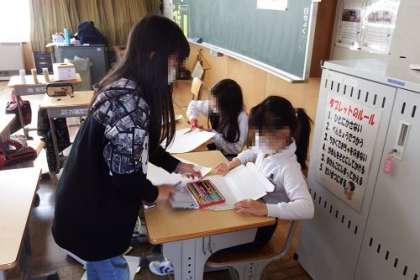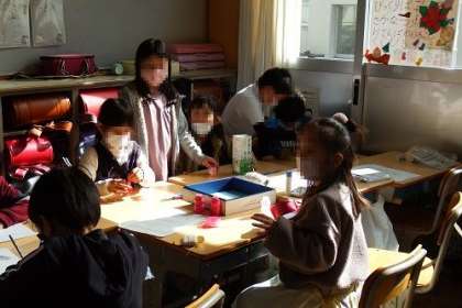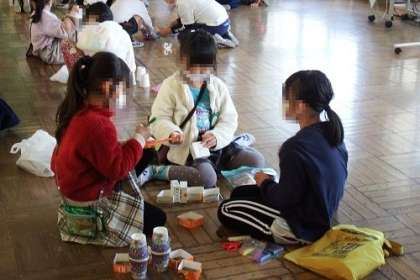 2年生が1年生を招待し、おもちゃパーティーを行いました。2年生が作ったおもちゃを紹介し、遊び方を教えてあげ、いっしょに遊びました。2年生は、1年生の子によくわかるように工夫して、優しく丁寧に教えていました。すごろくやけん玉、的当てなど2年生が考え付いた楽しいおもちゃがいっぱいでした。
