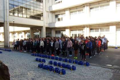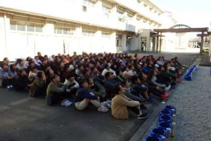 6年生が卒業アルバム用の学年写真を撮りました。中庭で、2階から撮る写真やさんの合図に合わせます。いい笑顔を写真におさめることができました。卒業の文字が少しずつ近づいてくるのを感じます。