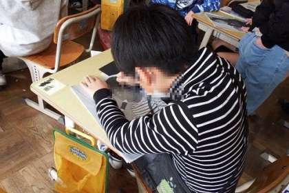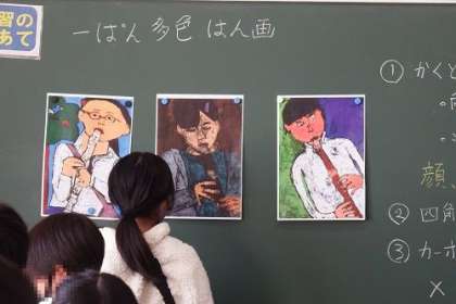 図工で「一ぱん多色はん画」の学習に入りました。1年に一度の版画の時間です。素敵な作品にしたいと思います。この日は、自分の写真をもとに、下絵を描いていきました。
