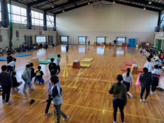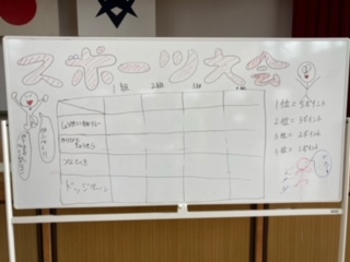 5年生のキャンプが始まりました。1日目の今日は、学校での活動です。最初は、学年スポーツ大会を行っています。