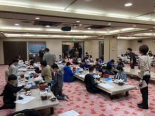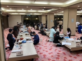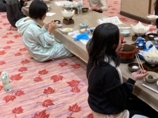 夕食は、交代でとっています。今、後半の子たちが、夕食を始めました。中には、ご飯をおかわりする子も。