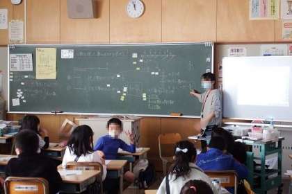 算数「分数」の学習で、分数の大きさを表しました。分数は、何分の1が基本であり、その大きさがすべての分数に活用できることを知りました。