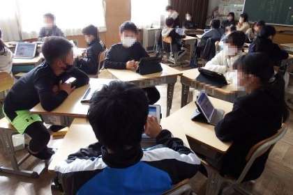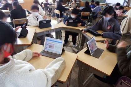 5年生国語「問題を解決するために話し合おう」の学習を行いました。実際にグループで問題解決に向けて話し合います。タブレットの資料を使いながら、計画にしたがって、話し合いを深めました。