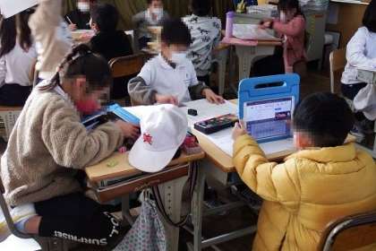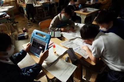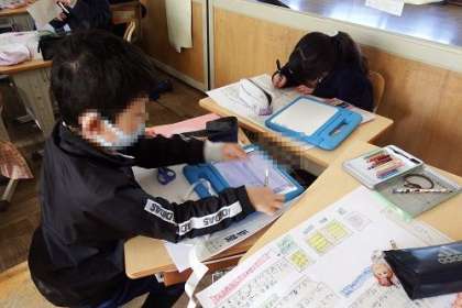 総合的な学習「やさしさ たんけん」で、福祉について学習しています。現在は、学習のまとめとして作成している新聞が、完成に近づいてきました。四月より学んできたことをしっかりとまとめてほしいです。