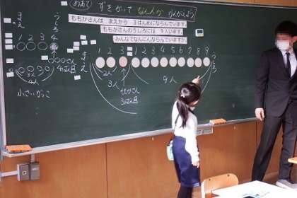 算数「ものとひとのかず」の学習に取り組みました。〇番目と〇人の違いを考えて解く問題に挑戦しました。タブレットを使ったり、図にかいたりしながら、問題を解決していきました。
