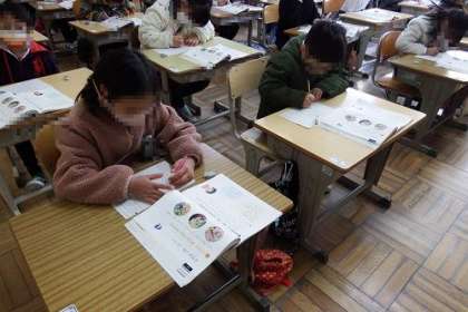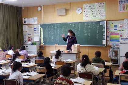 国語「おはなしをかこう」の学習の様子です。昔話に出てくるいろいろな人物を参考に、自分だけのお話をつくります。さて、どんな人物が登場し、どんなお話になるのか、これからがとても楽しみです。