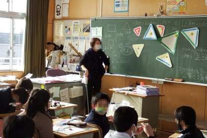 算数「三角形をつくろう」の学習に入りました。今日は、たくさんある三角形をなかまわけする問題に取り組みました。二等辺三角形や正三角形を分類していきます。