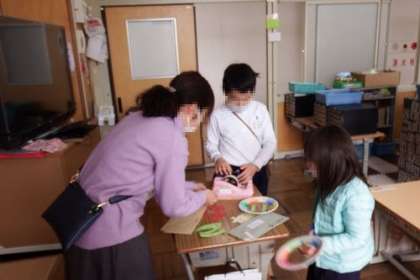 図工で「キラキラのおしょうがつかざりをつくろう」に取り組みました。紙皿や色紙などを使い、私だけのお正月飾りの完成です。お家にもぜひ飾りたいですね。