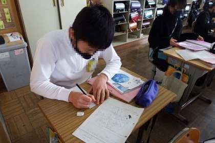 6年生が国語の学習で、俳句に取り組んでいます。心が動いたことを17音で表します。今日は、清書を行いました。さて、どんな作品になるのか、楽しみです。