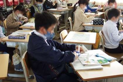 算数「三角形」の学習です。角について学習した子どもたち。この日は、二種類の三角じょうぎの角の大きさをくらべました。三角形の紙を切ってあわせたり・・・。
