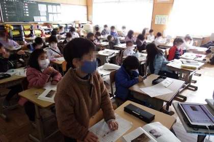 国語「子どもをまもるどうぶつたち」の学習の様子です。この日は、オオアリクイについて学びました。キーワードを意識しながら、どうやってオオアリクイの親が子どもを守るのか読み取りました。