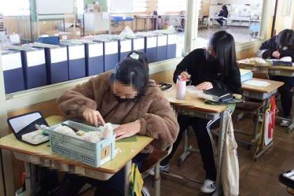 6年生が図工の学習で卒業制作のオルゴール作りに入りました。今日は、オルゴールのふたを集中して一生懸命に彫っていました。こうして、いよいよ卒業が近づいてきたのを実感します。
