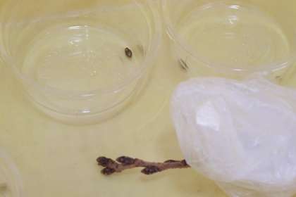 理科「季節と生物」冬の生物のようすで、サクラの芽を観察しました。冬の寒さに耐えながら春を待っているサクラ。その中の様子まで、しっかりと観察しました。