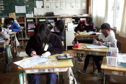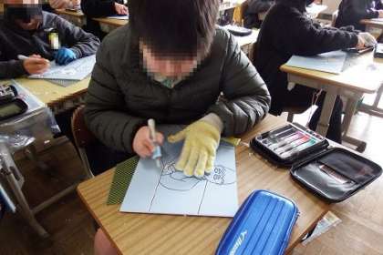 6年生の図工で、版画を制作しています。小学校生活最後の版画になります。思い出に残る作品にしてください。一彫一彫に思いを込めて。
