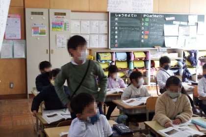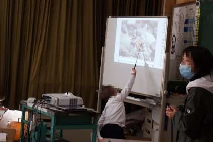 国語「子どもをまもるどうぶつたち」の読み取りを行っています。写真は、コチドリの親が知恵を使って、自分の子どもを守ろうとしているところの学習の様子です。子どもたちなりの表現で一生懸命に説明しています。