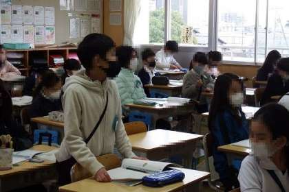 資料「朝がくると」を使って、道徳の学習を行いました。朝がくると、顔を洗ったり服を着たりするが、全て「ぼくがつくったものではない」自分の生活を支える身の回りの物を作ってくれた人に感謝の気持ちを・・・。