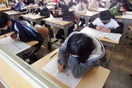 今日は学力テスト(国語、社会科)を実施しました。写真は、5年生の社会科の様子です。昨日に引き続き、問題を時間いっぱい一生懸命に解いていました。