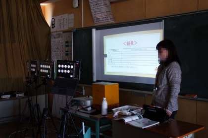 オンライン朝の会の後、オンライン学習が始まりました。教室の中は、先生たちの声だけが聞こえます。タブレットの向こうに子どもたちがいることを思いながら、授業を進めます。写真は、4・5・6年生の様子です。