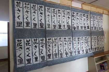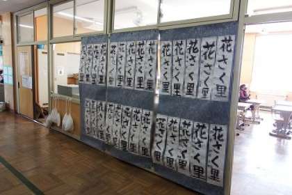 1月の書いた書き初め。本当は学習発表会で見ていただく予定でした。残念ながら学習発表会が中止になりました。子どもたち同士でもお互いの作品を見合えるように、現在廊下に掲示しています。